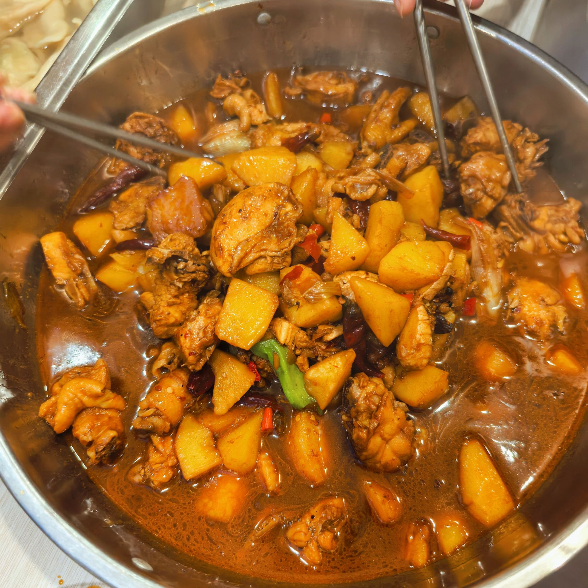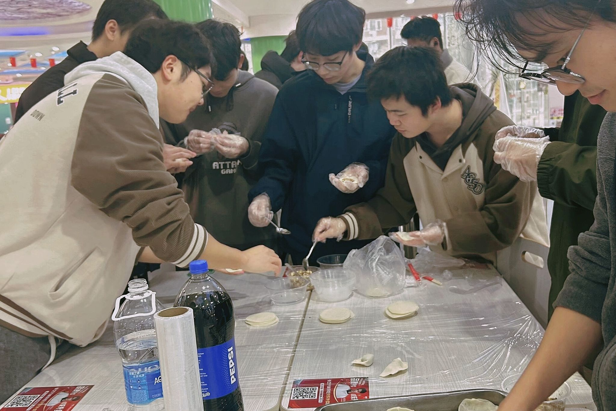 师生们分工明确、协作默契,有人准备了玉米虾仁肉、韭菜鸡蛋等多种馅料,有人专注包饺子,有人悉心守灶煮饺子,有人忙着端盘递碗,分工协作间满是欢声笑语。护理学1班周鹏飞同学还现场烹制了新疆大盘鸡,赢得师生们一致点赞。围坐一堂的师生们畅聊生活点滴与学习感悟,话题从冬至传统习俗延伸至南北地域饮食差异,气氛热烈而温馨。不少热心学生主动穿梭其间,分享包饺子的实用技巧,耐心指导大家如何包得既美观精致,又不易煮散露馅。